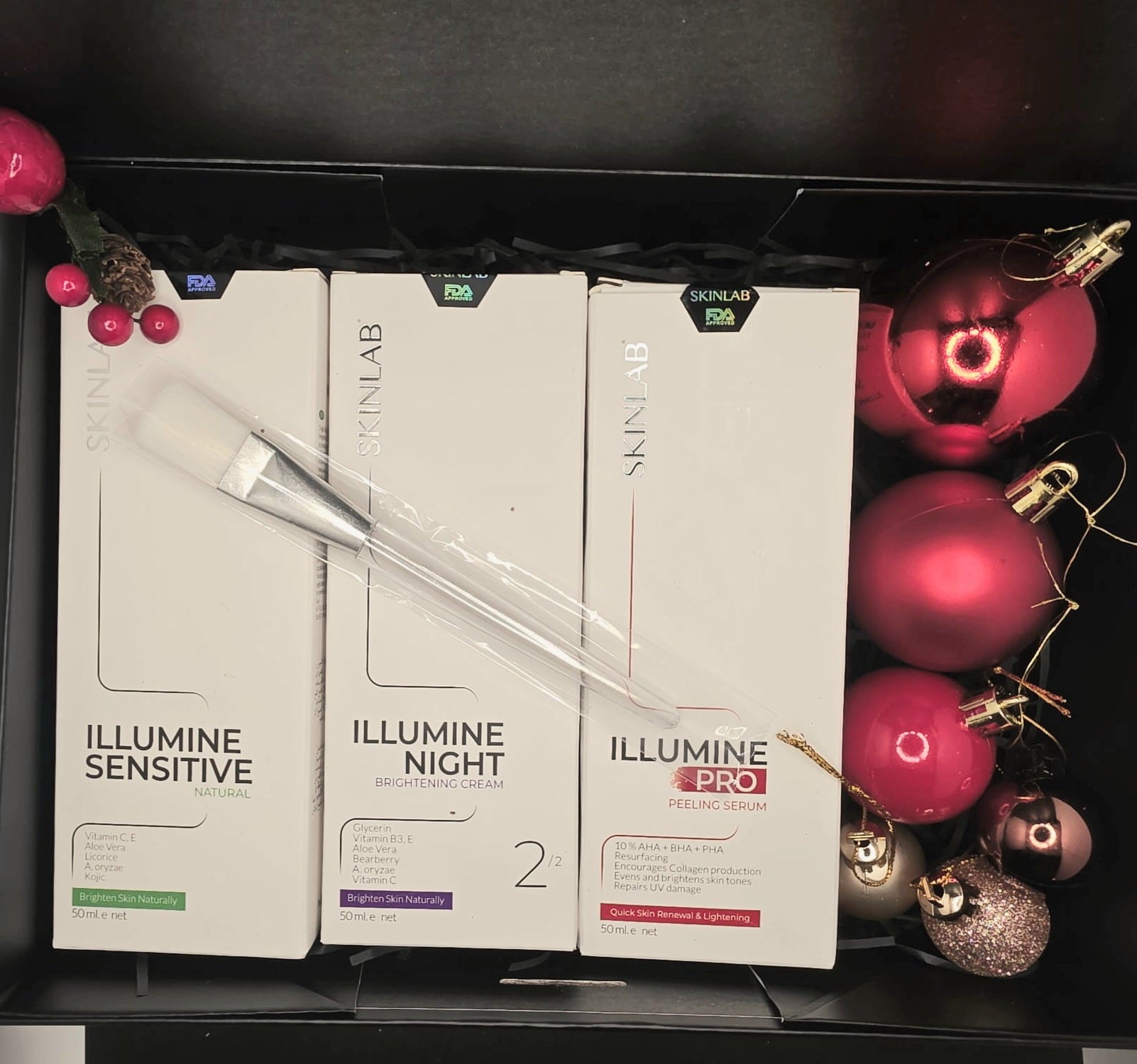 This Illumine gift set is an advanced pigment correction full treatement that's designed to brighten the skin and reduce the appearance of hyperpigmentation.