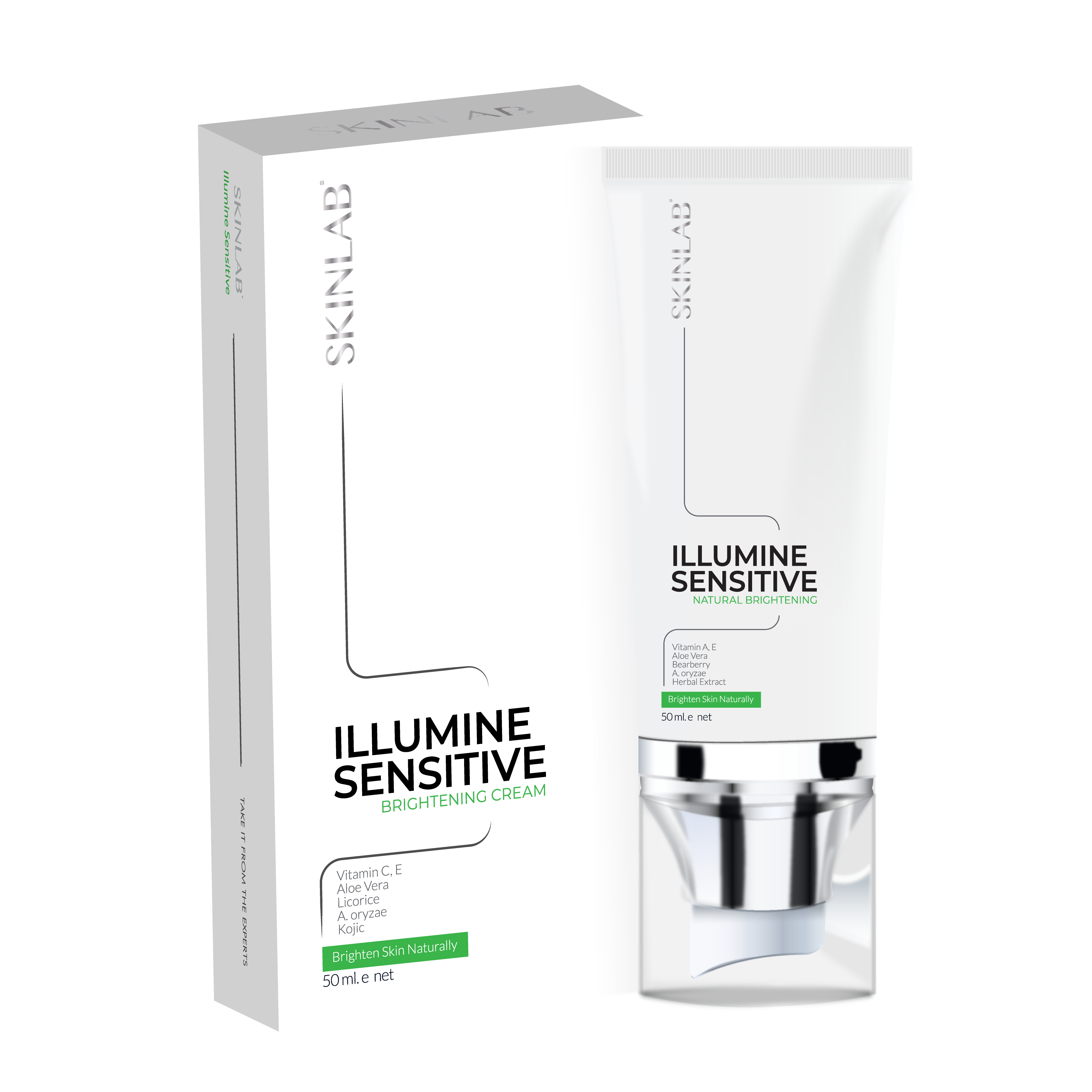 Illumine Sensitive is made with unique skin brightening agents made of herbal extracts, Aloe vera, mulberry, bearberry and vitamins that inhibit skin cells from producing melanin pigments. By inhibiting melanin, stimulating MSH (melanotropin). It has high water retaining ability and has recently been shown to be present in the epidermis. HA (Hyaluronic acid) plays a central role in hydration and elasticity of the skin.